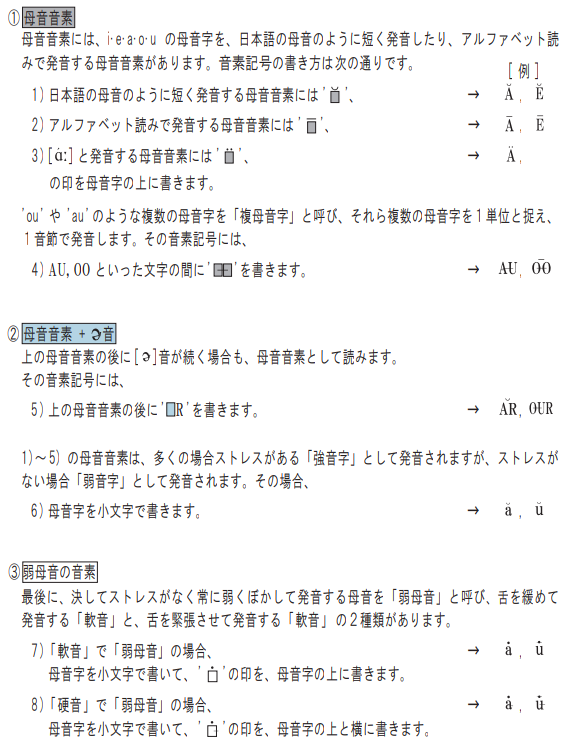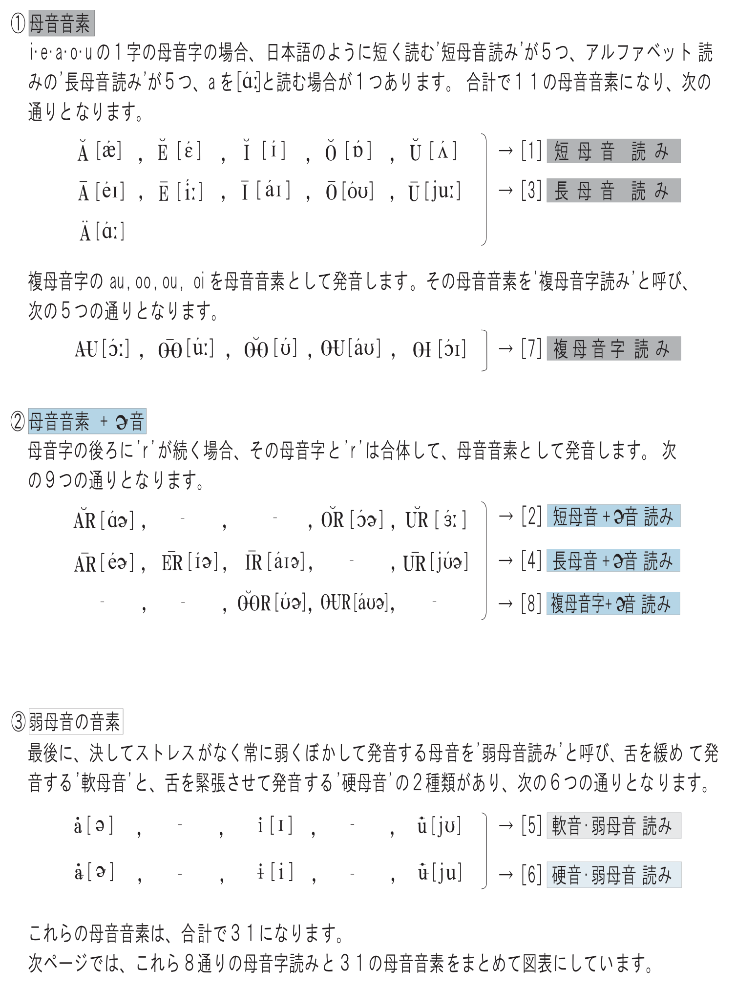 (2)母音音素へ(母音字→8通りの母音字読み→母音音素)
